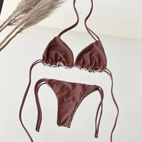 - Al ser reversible tenes 4 bikinis en 1, ya que podes usarla del lado chocolate, del lado champagne, o combinar corpiño de un color y bombacha de otro y viceversa!